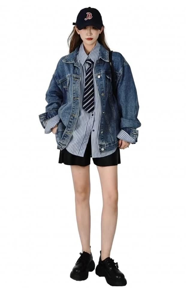 - Mix cùng áo croptop + quần ống rộng hoặc jogger, tạo sự đối lập năng động.